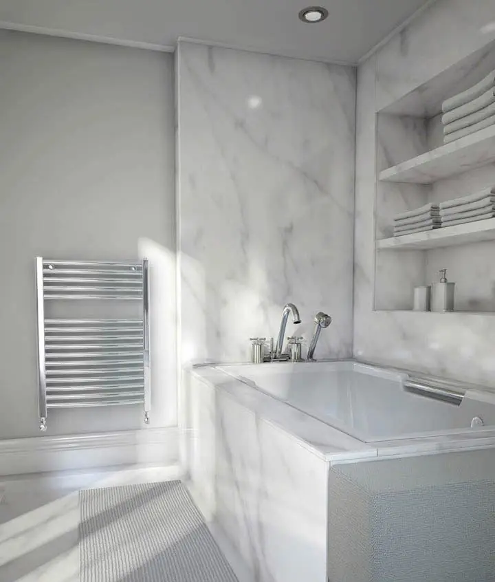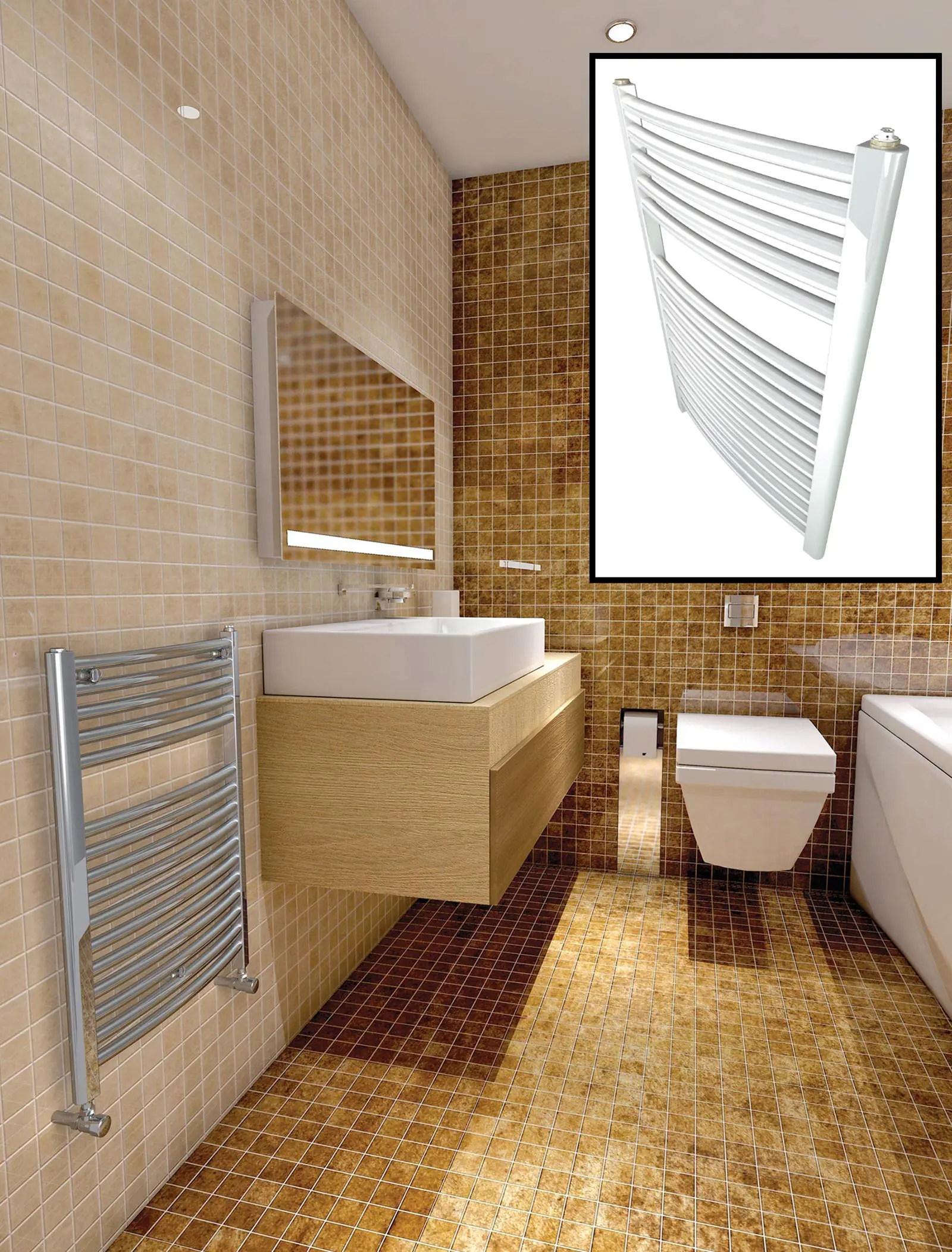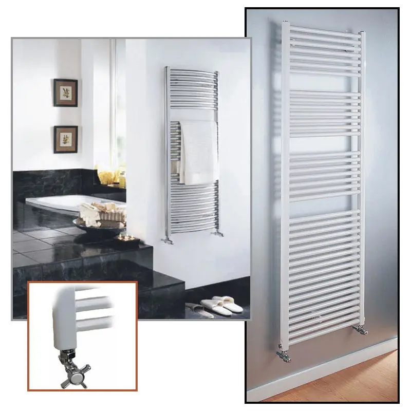With a choice of attractive straight or softer curved rails available in both white and chrome finishes, the ladder towel rails are ideal for bathrooms and kitchens. These simple-chic towel rails offer efficient space heating and practical drying performance to enhance your bath or shower-room.